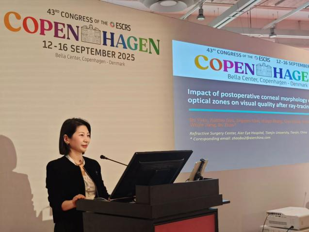 近日,全球眼科領(lǐng)域頂尖學(xué)術(shù)盛會(huì)——第43屆歐洲白內(nèi)障與屈光外科醫(yī)師學(xué)會(huì)(ESCRS 2025)大會(huì),于2025年9月12—16日在丹麥哥本哈根隆重召開(kāi)。天津大學(xué)愛(ài)爾眼科醫(yī)院趙波院長(zhǎng)和袁博(博士后)受邀出席,并攜兩項(xiàng)屈光手術(shù)領(lǐng)域重要研究成果精彩亮相。 作為1991年成立、覆蓋130國(guó)超7500名成員的國(guó)際權(quán)威學(xué)術(shù)組織,ESCRS大會(huì)是眼前節(jié)手術(shù)領(lǐng)域的“風(fēng)向標(biāo)”,以學(xué)術(shù)標(biāo)準(zhǔn)嚴(yán)格、前沿成果集中著稱。本屆會(huì)議聚焦白內(nèi)障防治、近視手術(shù)技術(shù)革新、老視治療等熱點(diǎn)議題,為各地眼科領(lǐng)域?qū)I(yè)人士,提供了交流最新研究成果、行業(yè)產(chǎn)品,以及與全球同行建立聯(lián)系的機(jī)會(huì)。